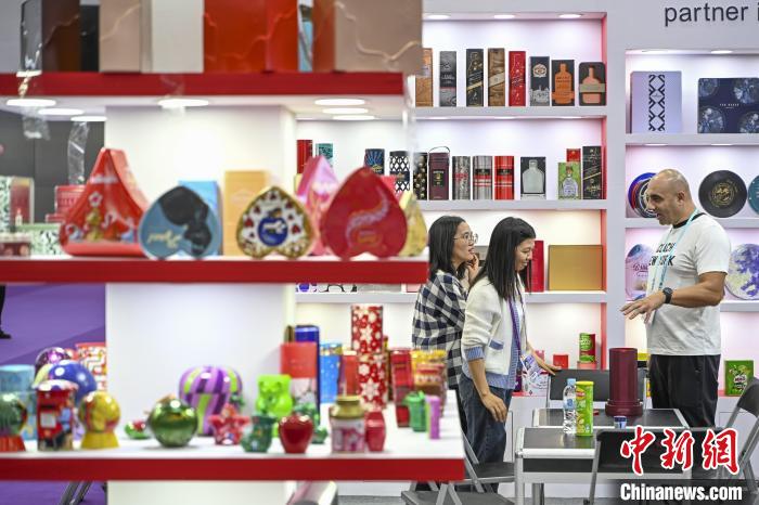 10月27日,廣東廣州,為期五天的第136屆中國進出口商品交易會(廣交會)第二期結束,以“美好生活”為題材的第三期展會將于10月31日開幕。圖為采購商在禮品及贈品展區(qū)與參展商洽談?!∮浾?陳驥旻 攝