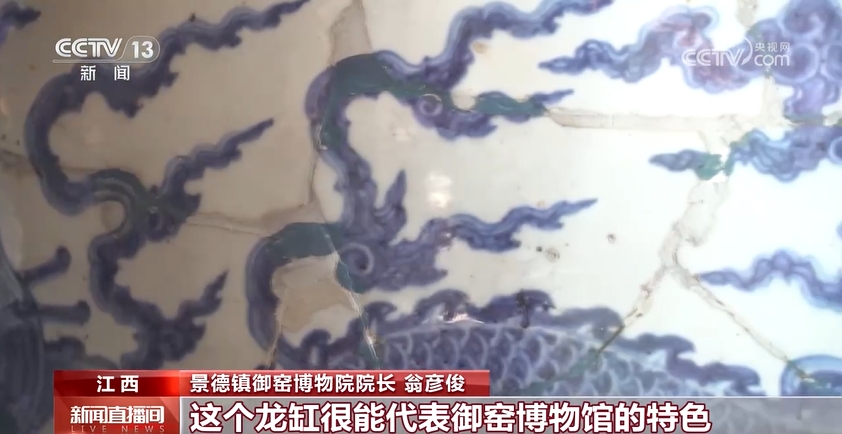 景德鎮(zhèn)御窯博物院院長(zhǎng) 翁彥?。?我們的所有的展品都來(lái)自于我們身后的御窯廠,通過(guò)考古挖掘出來(lái)的。當(dāng)年御窯對(duì)落選品的處理制度非常嚴(yán)格,不合格的就要打碎還集中掩埋,所以我們能夠發(fā)現(xiàn)這么多的碎片,并且能夠把它拼對(duì)出來(lái)。這個(gè)龍缸很能代表御窯博物館的特色。