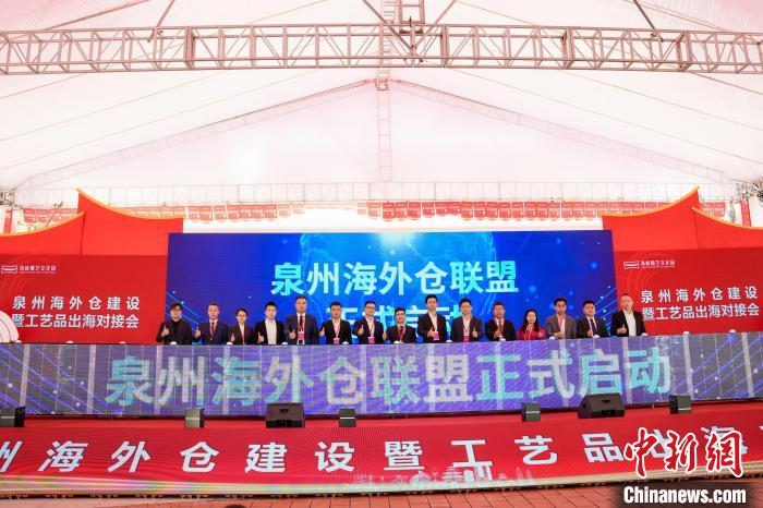 4月2日,福建泉州舉辦海外倉建設(shè)暨工藝品出海對接會。圖為泉州海外倉聯(lián)盟啟動儀式。泉州市委宣傳部供圖