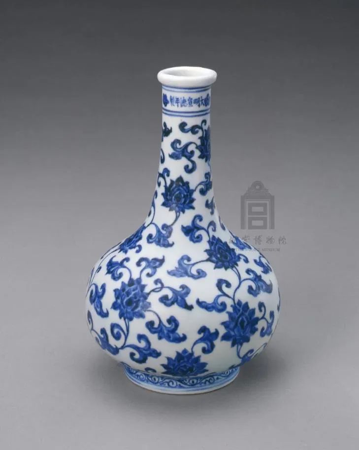 這是一件清代乾隆時(shí)期景德鎮(zhèn)御窯廠燒造的宮廷用瓷,其造型、紋飾皆源于明代永樂、宣德時(shí)期的官窯青花瓷器,表現(xiàn)了乾隆時(shí)期在陶瓷器皿制作方面尚古之風(fēng)的興盛