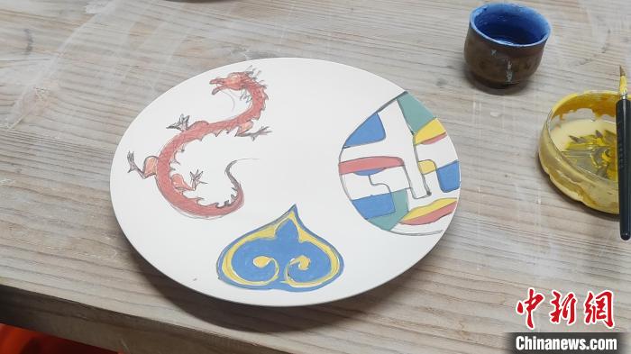 “我們畫一個中國文化的圖案吧!”在博塔的提議下,羅伯特首先想到了龍。很快,他在留白處畫下了一條紅色的中國龍?!拔覀儸F(xiàn)在畫出了三個國家的文化元素,它們在一個陶瓷載體上呈現(xiàn)出來,這就是陶瓷最大的魅力,我覺得非常有意義。”