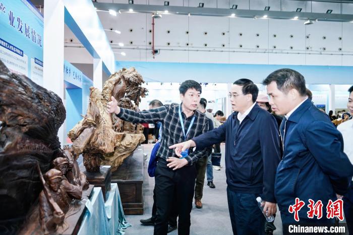 在產(chǎn)業(yè)推介環(huán)節(jié),亞太地區(qū)手工藝大師陳阿金、浙江省工藝美術(shù)大師王武率先登臺(tái),他們通過剖析百壽百福劍、青璧等“國禮”作品的靈感來源、制作過程等,與大家分享龍泉?jiǎng)Υ沙蔀椤皣Y”背后的故事,展示龍泉?jiǎng)Υ山橙艘唤z不茍、精益求精的工匠精神。