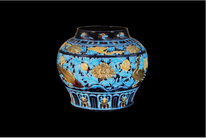 琺華鳳鳥牡丹紋剔刻貼金大罐
