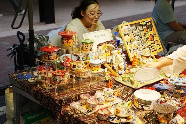 方李莉回憶,2010年前后,外地的陶藝家、畫家和全國(guó)各地美術(shù)學(xué)院的年輕大學(xué)生來到景德鎮(zhèn)學(xué)習(xí)、創(chuàng)作,“景漂”在這座城市悄然出現(xiàn)。有人開始把自己的作品擺在街頭售賣,初步在瓷廠周邊形成了集市,星星點(diǎn)點(diǎn)。