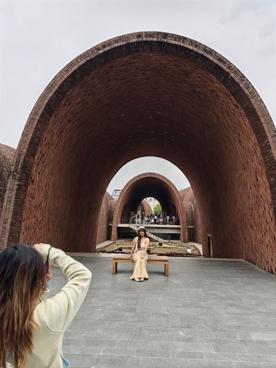 遍布全城的150多處老窯址、108條老里弄,讓景德鎮(zhèn)猶如一個(gè)開放式的陶瓷博物館?!澳X洞大開”的拍照方式吸引游客排長(zhǎng)隊(duì)打卡:透過鏤空青花瓷板裝置拍龍珠閣、在御窯博物館外拍磚紅色拱形墻體及水中倒影……
