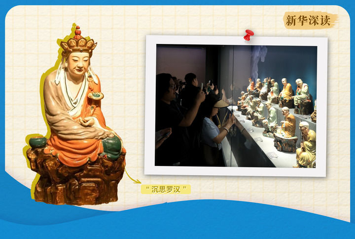 “到博物館,坐扶梯到3樓,別猶豫,改步行奔6樓,撒腿跑向左邊第二個(gè)展廳,就能甩掉‘千軍萬馬’到‘沉思羅漢’面前……”在景德鎮(zhèn)頂流瓷雕“沉思羅漢”搬家前,每逢節(jié)假日,展廳內(nèi)就人滿為患,排著一圈又一圈長(zhǎng)隊(duì)的年輕人只為跟它合個(gè)影。