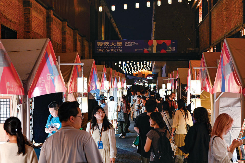 2024年10月17日,游客在陶溪川春秋大集上游覽。新華社記者周密攝