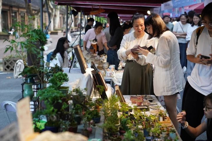 2024年10月,游客在陶溪川春秋大集上選購(gòu)創(chuàng)意瓷器。新華社記者 周密 攝
