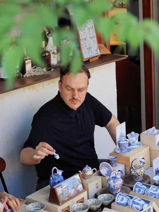 “90后”西班牙陶藝師喬曼,將家鄉(xiāng)巴塞羅那的陶瓷工藝、自己擅長(zhǎng)的手繪技法,與景德鎮(zhèn)傳統(tǒng)青花瓷工藝相結(jié)合。