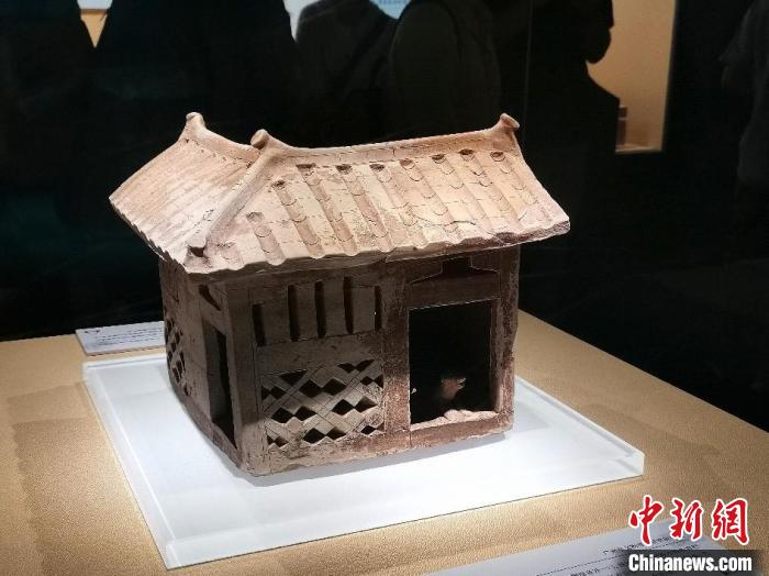 記者從展覽中看到,一件由1992年廣州市先烈南路大寶崗2號墓出土的曲尺式陶屋,為東漢時期的明器,內(nèi)有兩間房,房后有院落,以低矮女墻為圍欄,其四壁有鏤空的斜方格和直欄式窗戶,并刻劃有斗拱、支柱等。正間內(nèi)塑四俑一犬,側(cè)間的門與后院相通。