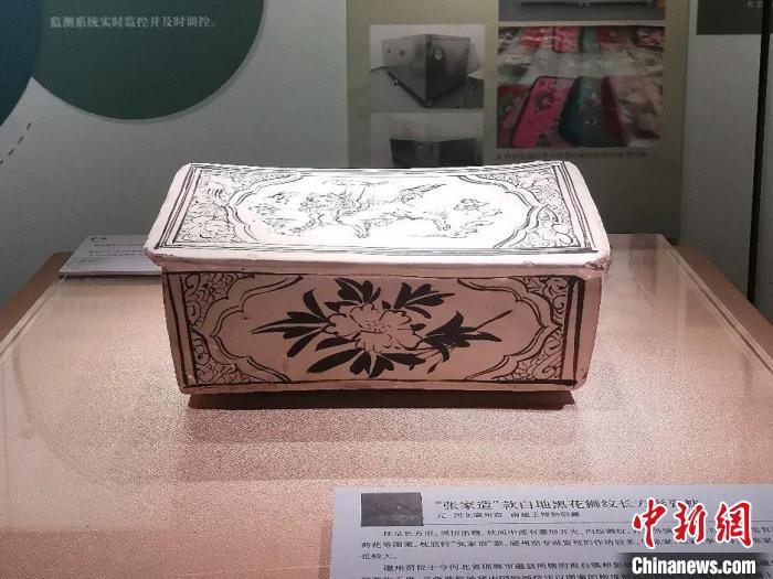 “張家造”款白地黑花獅紋長方形瓷枕。張躒樂 攝