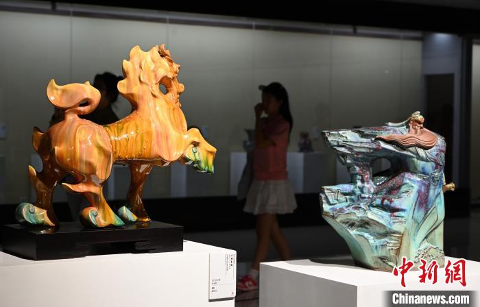 7月15日,內(nèi)蒙古呼和浩特市,陶瓷作品《物·源》展出。當(dāng)日,中國花釉陶瓷藝術(shù)作品巡展在呼和浩特美術(shù)館開展,展覽共展出80余件(組)作品,分為“傳承經(jīng)典”“匠心妙想”“邊界融合”三個板塊,作品展示了當(dāng)代花釉藝術(shù)的多樣路徑與美學(xué)取向。