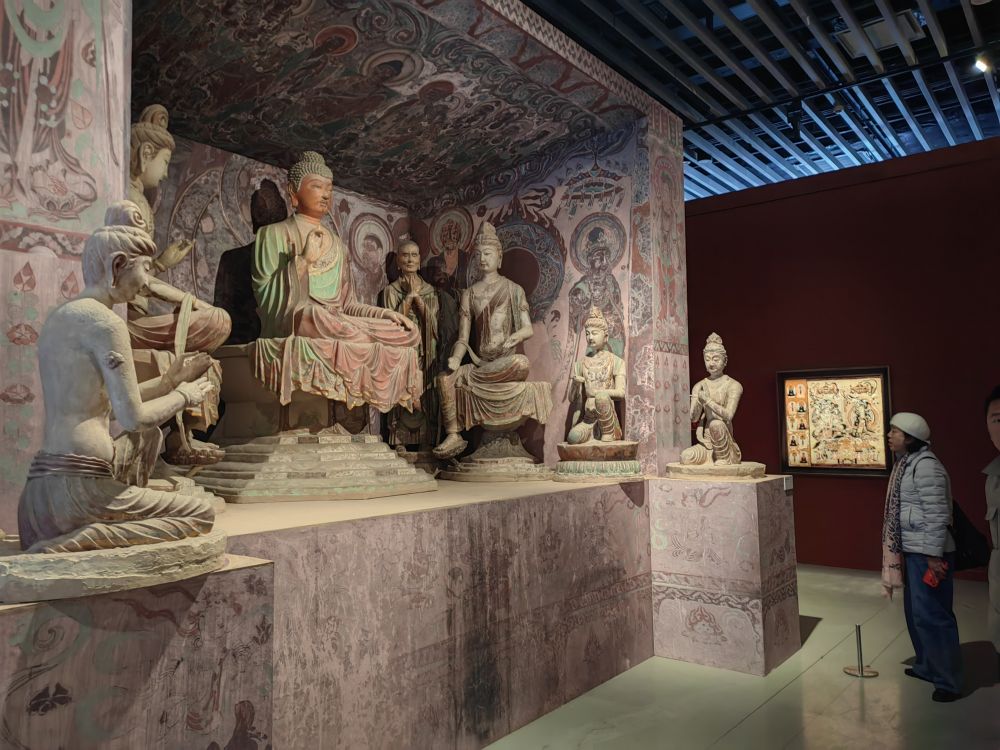多件流失海外的敦煌壁畫臨摹作品首次在國(guó)內(nèi)集中展示,填補(bǔ)了國(guó)內(nèi)敦煌學(xué)研究的空白;莫高窟第328窟官方復(fù)制窟攜8尊原比例復(fù)制彩塑首次來到江西,其精湛工藝讓觀眾仿佛穿越時(shí)空,直面千年敦煌的工匠精神。