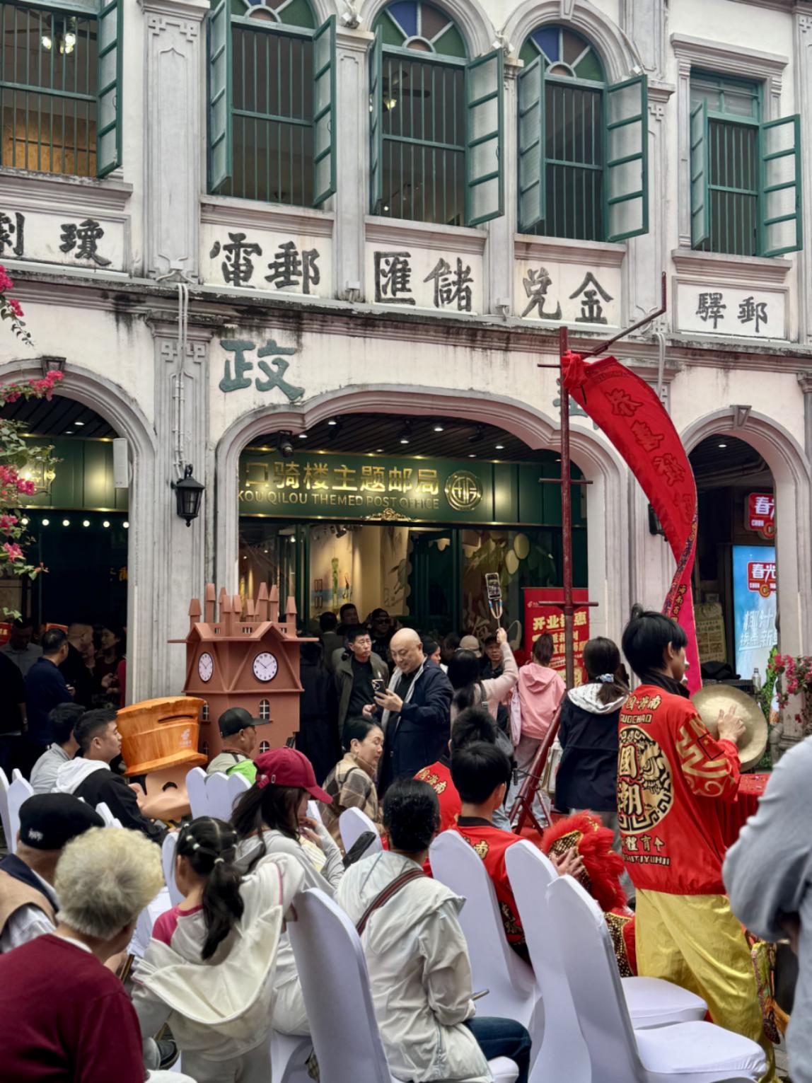 12月5日上午,坐落在騎樓中心街區(qū)的??隍T樓主題郵局舉辦隆重的升級開業(yè)活動。喧天鑼鼓與靈動醒獅點燃現(xiàn)場氛圍,這場以“騎樓郵韻?煥新啟幕——三日郵趣狂歡”為主題的活動,通過“儀式啟幕+周末續(xù)熱+咖郵香聯(lián)動”的創(chuàng)新模式,為市民游客獻(xiàn)上了一場融合文化體驗、便民服務(wù)與互動樂趣的郵政文化盛宴。