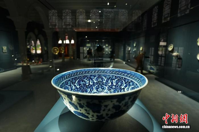 12月12日,展覽“圖案的奇跡:盧浮宮印度、伊朗與奧斯曼的藝術(shù)杰作”在上海浦東美術(shù)館舉辦媒體預(yù)覽活動(dòng)。圖為中式紋飾盆
